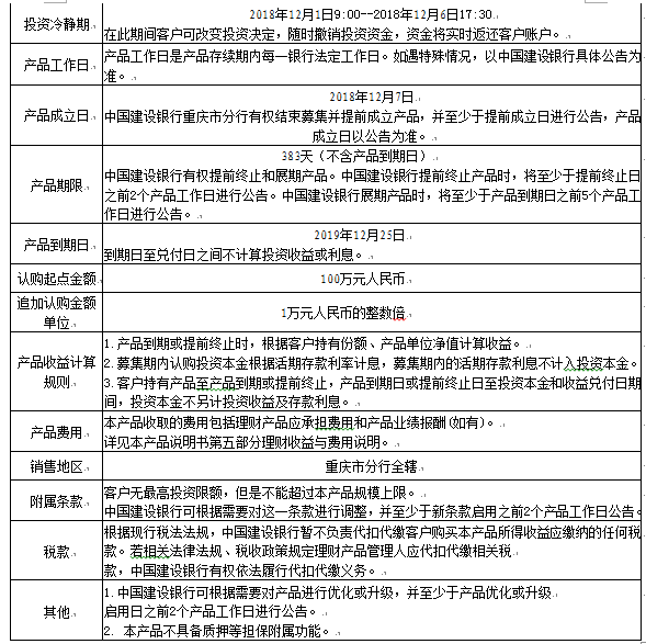 1.本产品不保障本金和收益安全,中国建设银行重庆市分行发行本产品不代表对本产品的任何保本或收益承诺。
