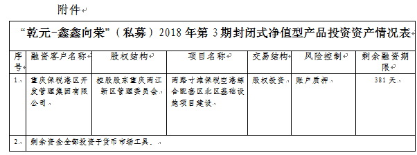 中国建设银行重庆市分行“乾元-鑫鑫向荣”(私募)2018年