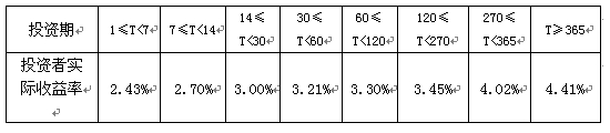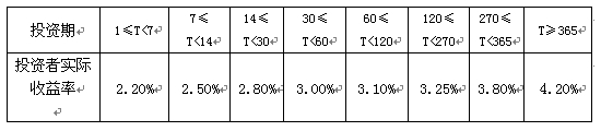 根据产品说明书的约定,2015年8月1日至2015年8月9日(含)投资者实际收益率如下表所示: