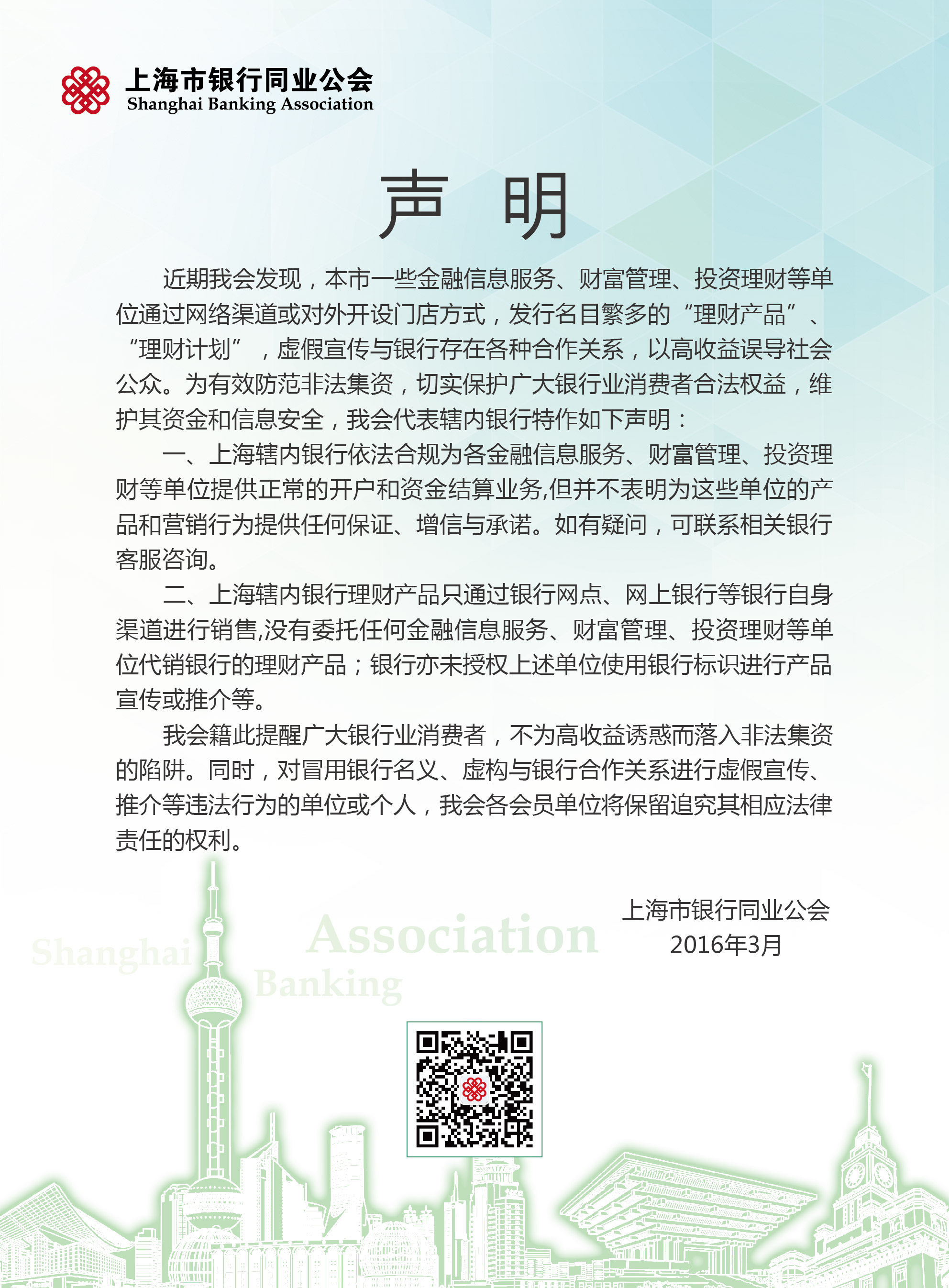 上海市银行业同业公会声明