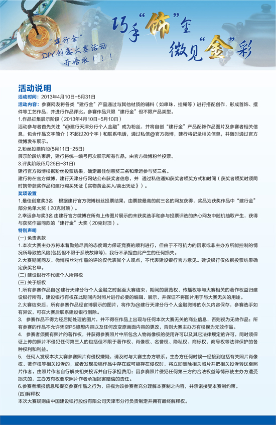 巧手“饰”金,微见“金”彩--“建行金”DIY创意大赛活动